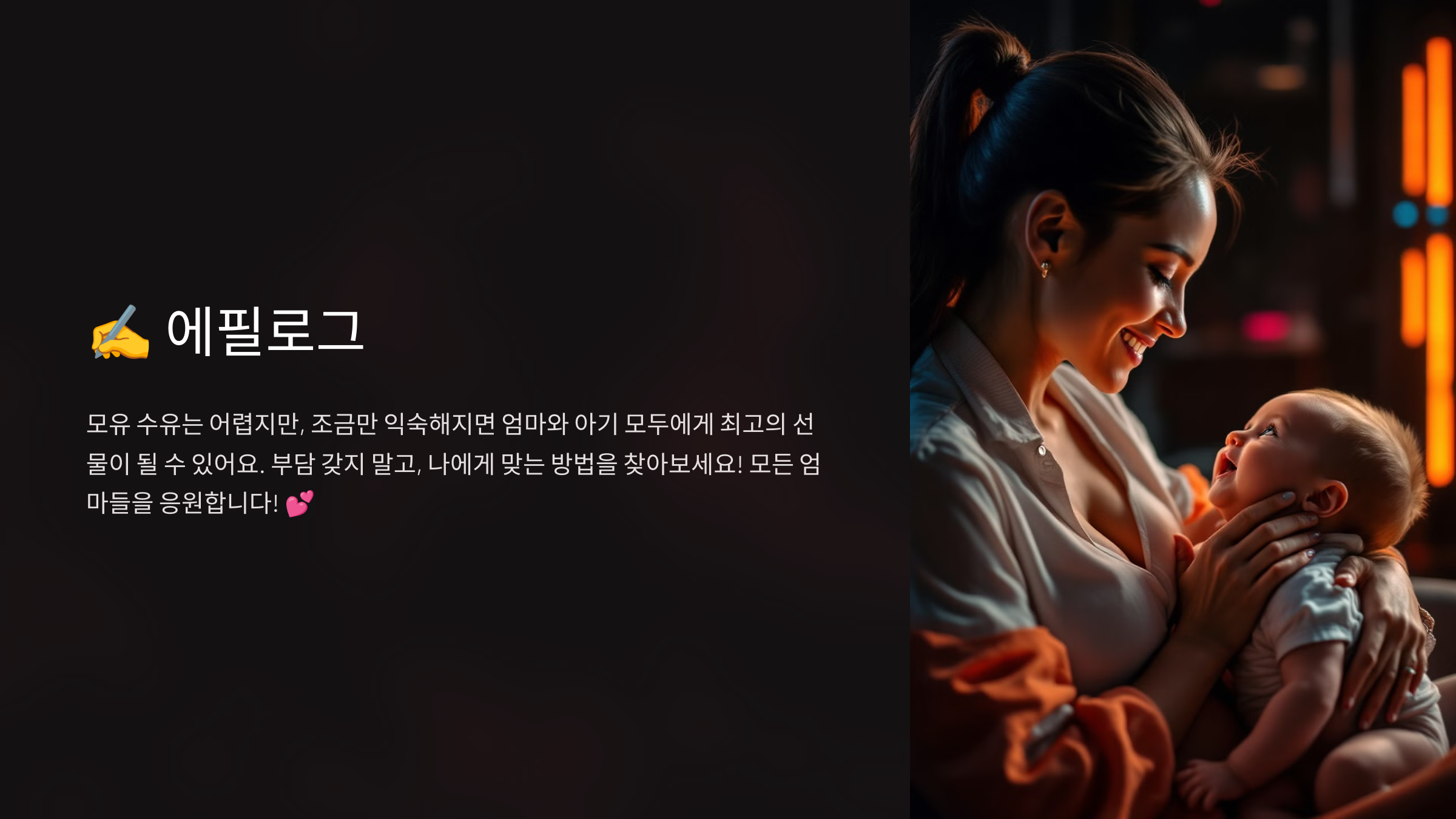 모유 수유는 어렵지만, 조금만 익숙해지면 엄마와 아기 모두에게 최고의 선물이 될 수 있어요.