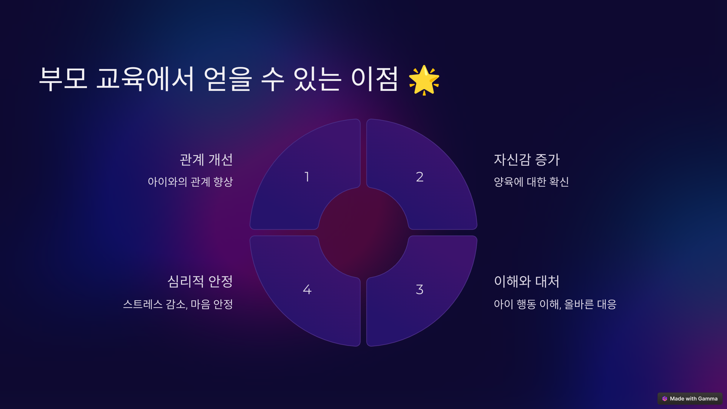 부모 교육은 단순히 양육 지식을 얻는 것뿐 아니라, 내면의 성장을 돕는 과정이기도 합니다.