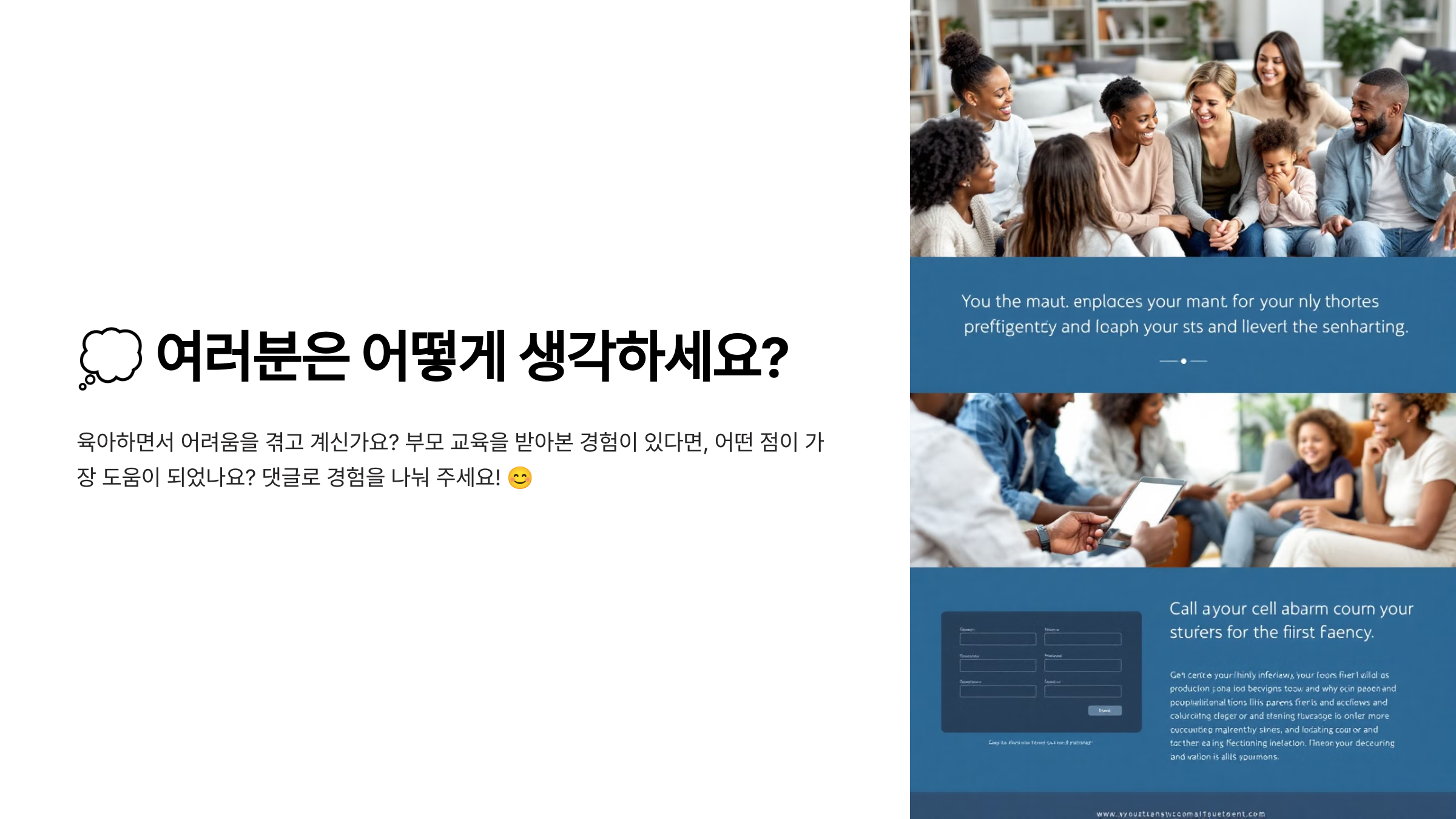 여러분도 육아하면서 어려움을 겪고 계신가요? 혹시 부모 교육을 받아본 경험이 있다면, 어떤 점이 가장 도움이 되었나요? 댓글로 경험을 나눠 주세요! 😊