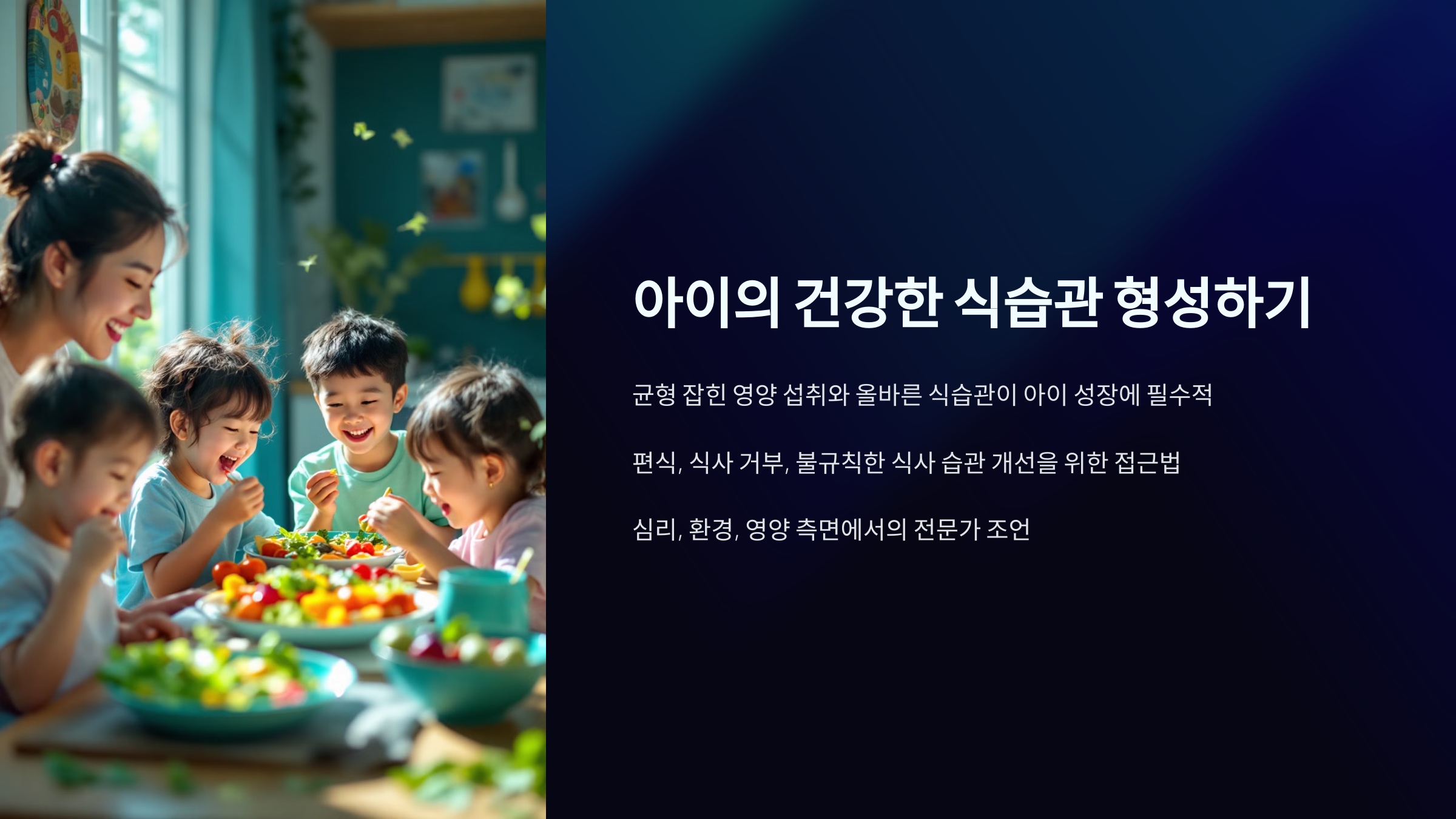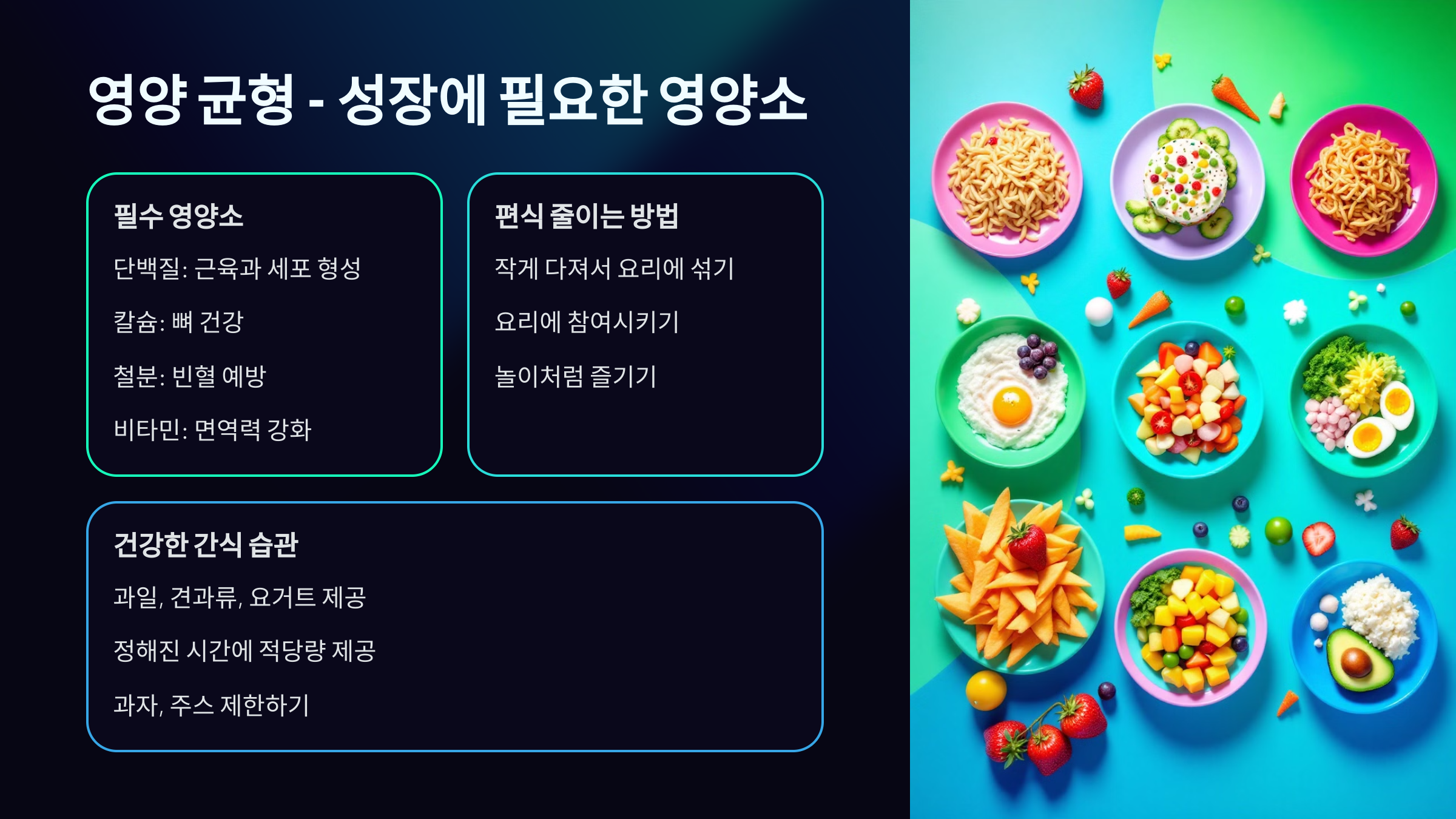 균형 잡힌 영양 섭취는 아이의 성장과 두뇌 발달에 매우 중요합니다.