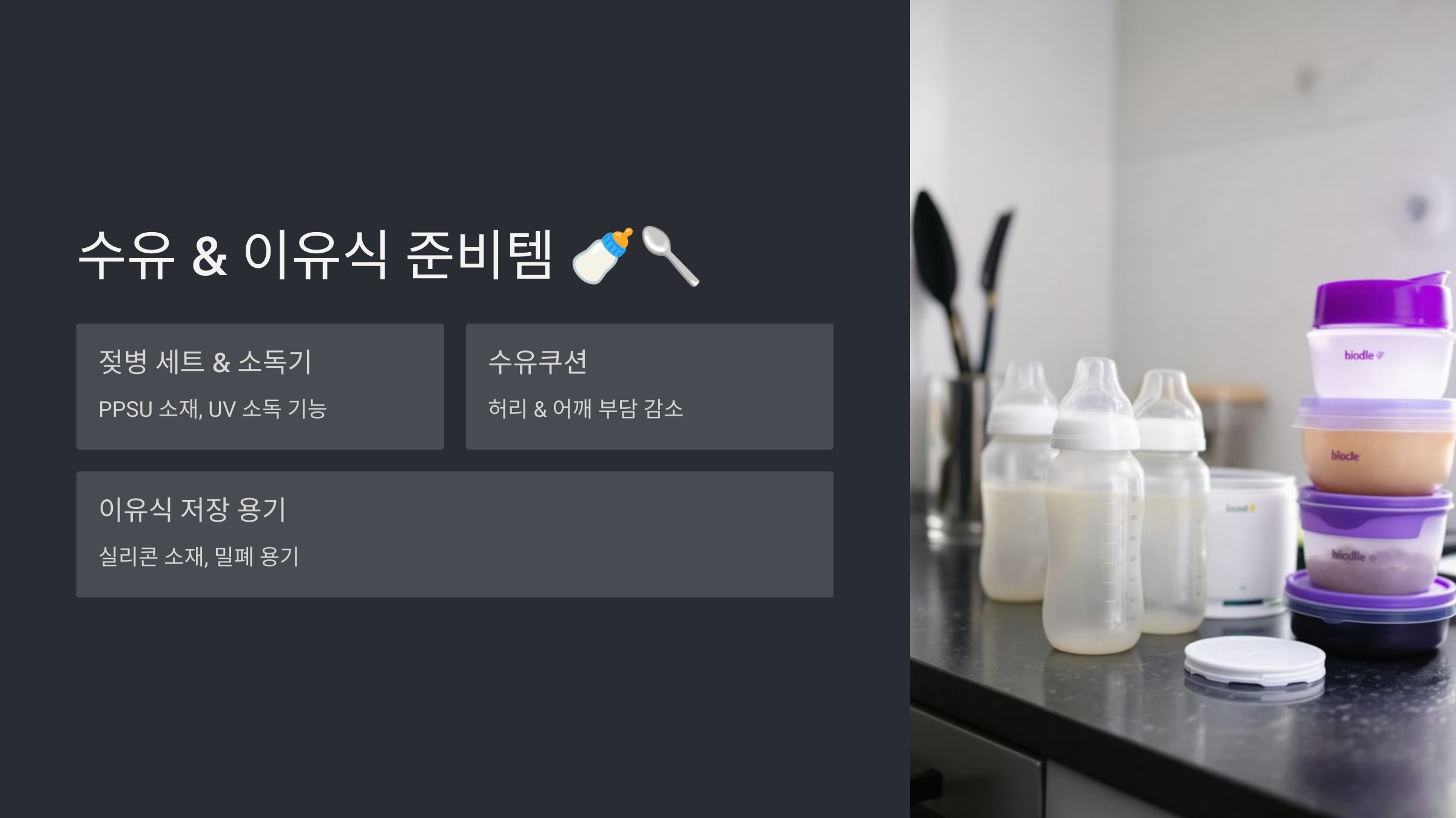 - 수유용품과 이유식 준비템