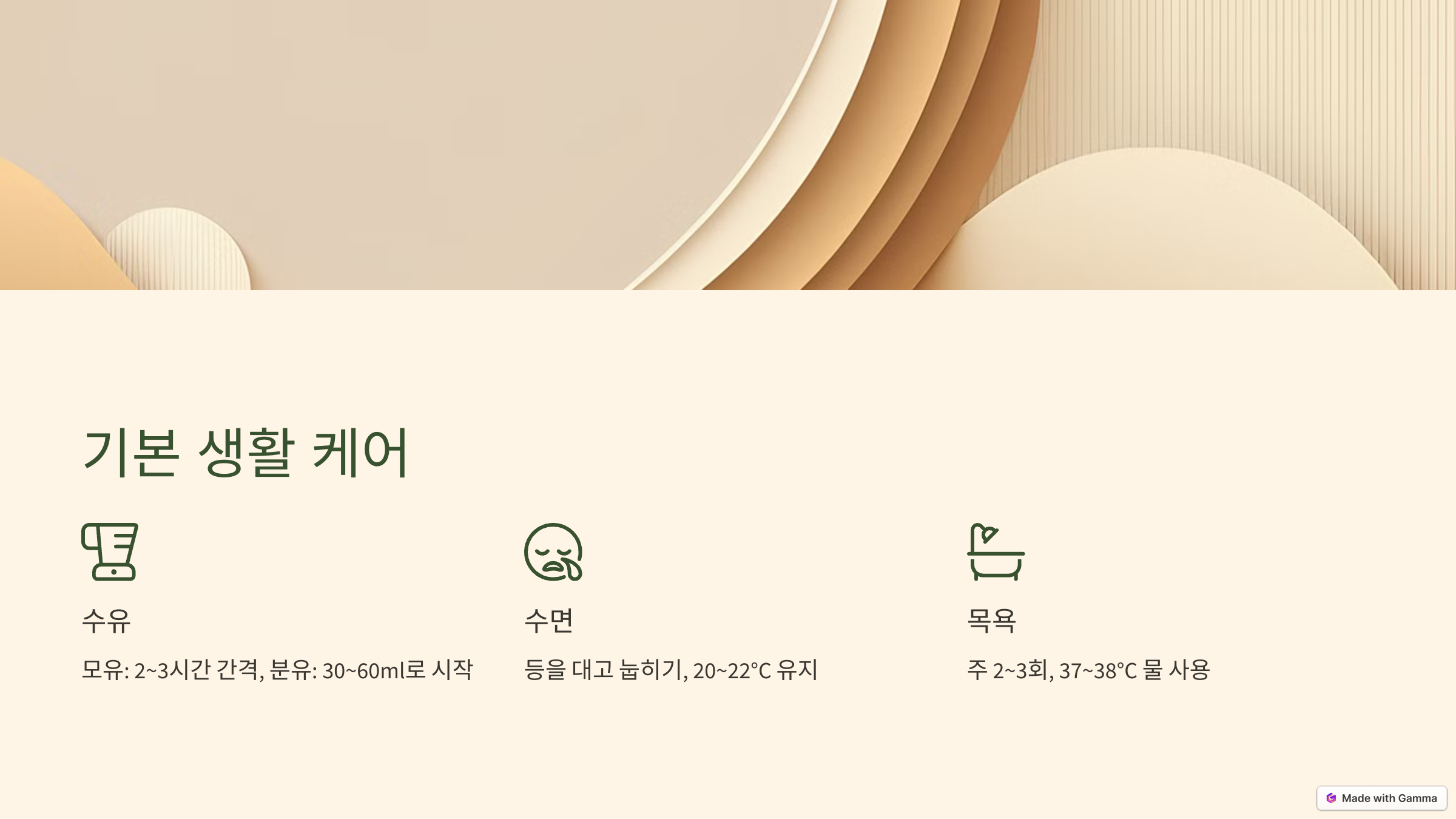- 기본 생활 케어 (수유, 수면, 목욕)