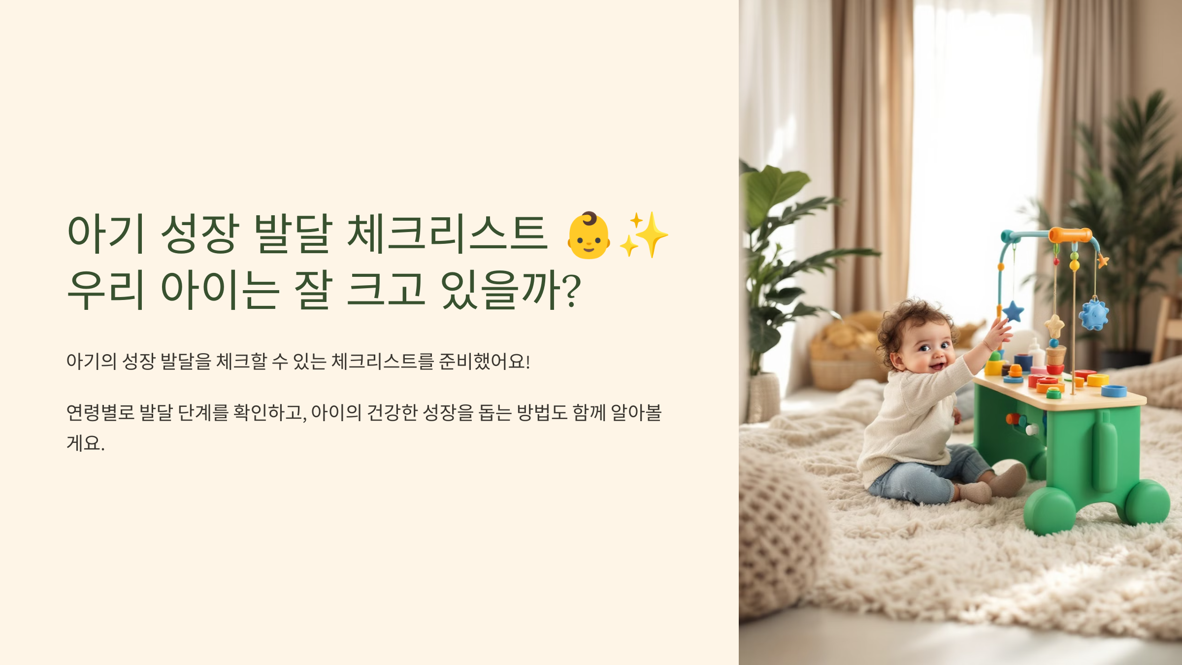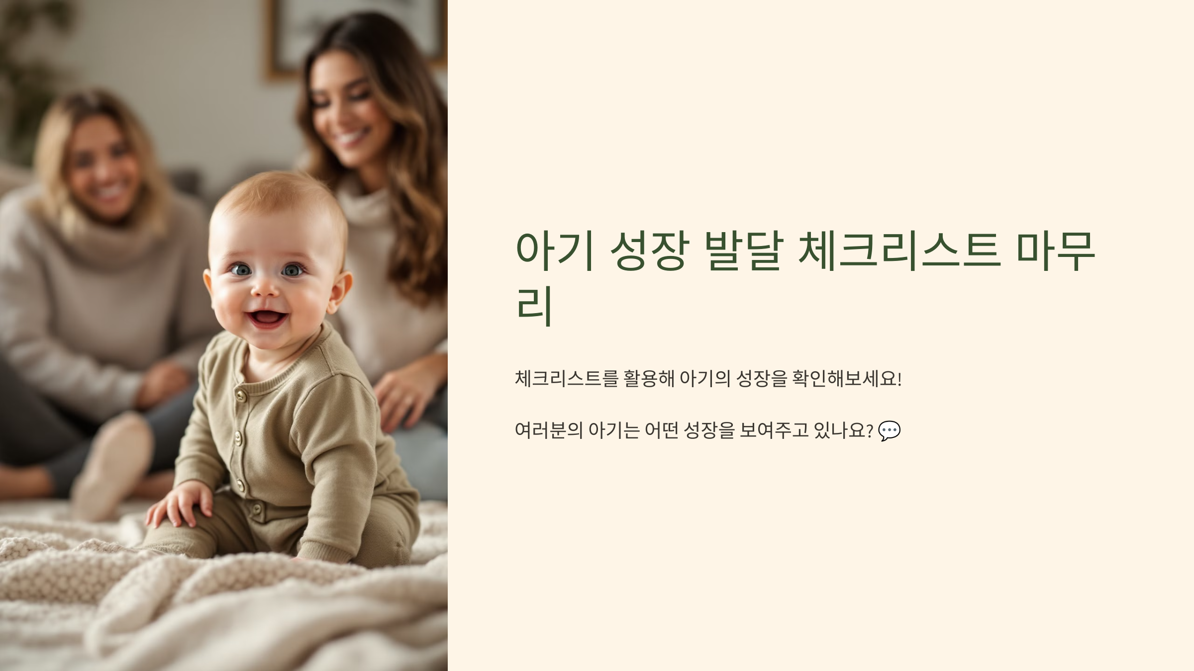 우리 아기가 잘 자라고 있는지 걱정이 될 때, 오늘 소개한 체크리스트를 활용해 보세요! 여러분의 아기는 어떤 성장을 보여주고 있나요? 💬 댓글로 경험을 나눠 주세요!