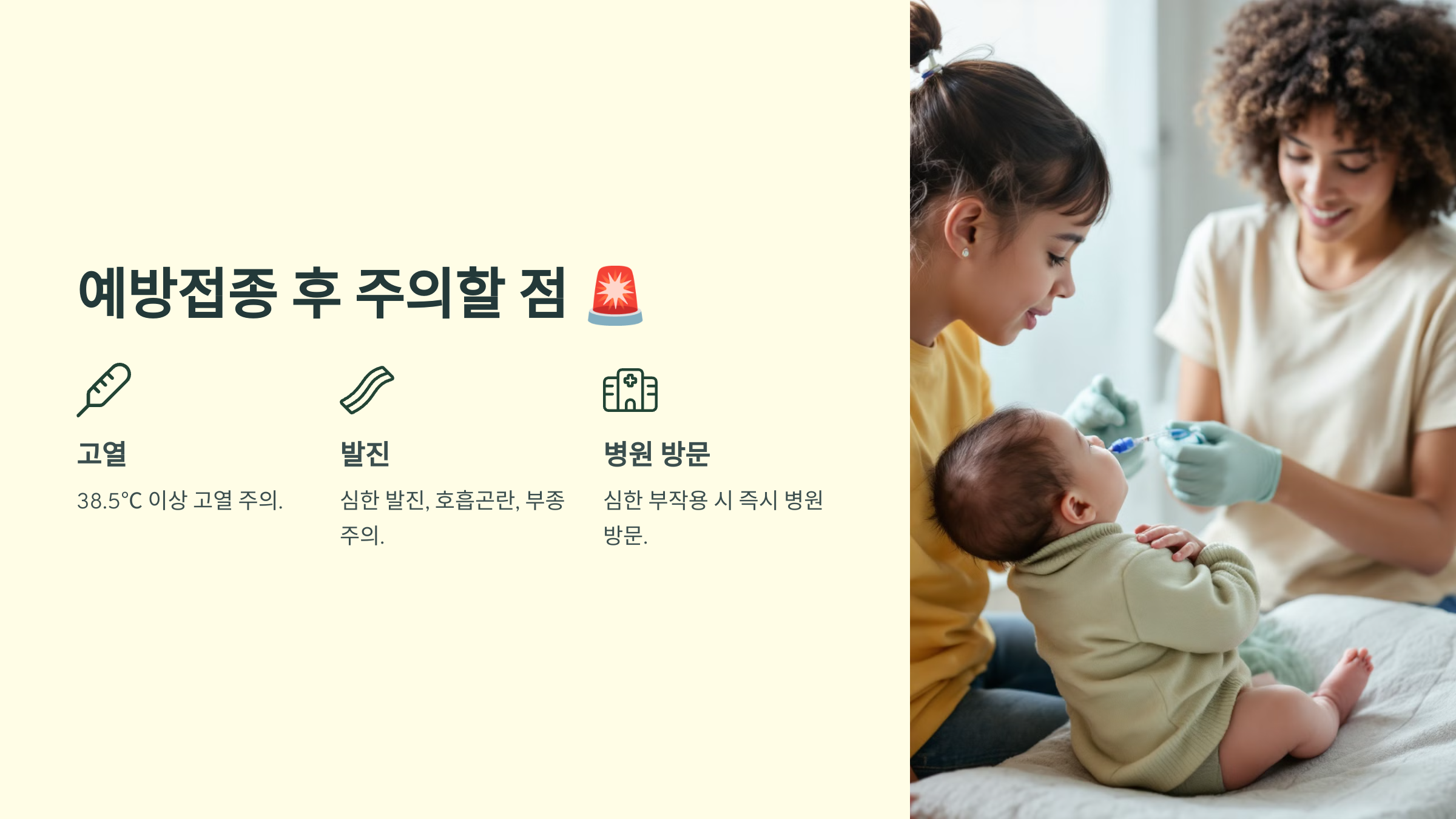 접종 후에는 반드시 아기의 상태를 지켜봐야 해요.