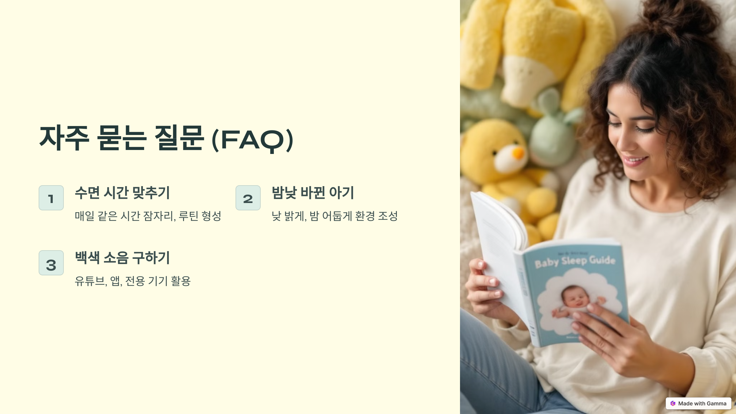 - 차분한 음악 듣기: 자장가나 백색 소음을 활용해 보세요. 🎵