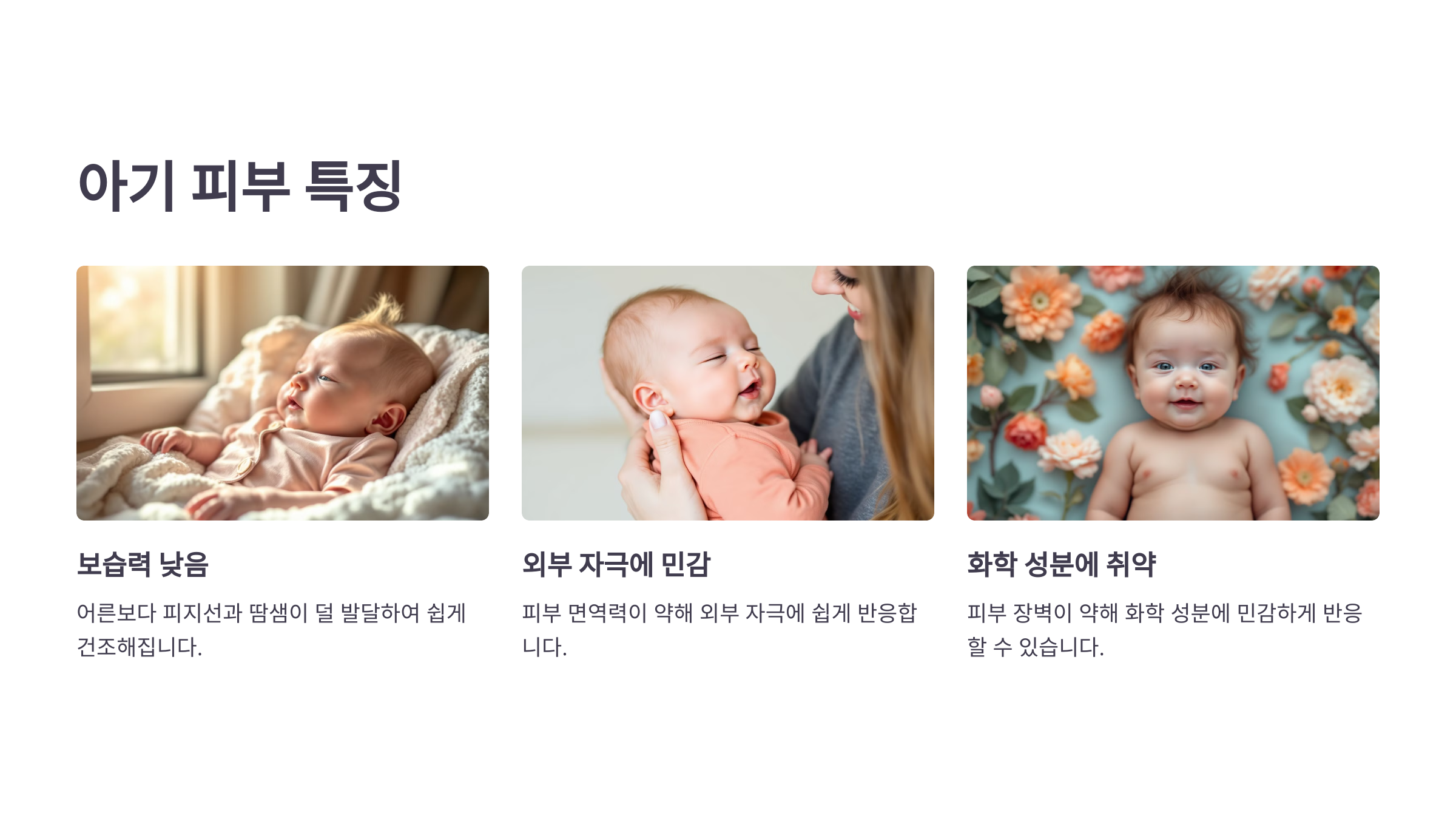 아기 피부는 성인보다 얇고 보호막이 약해요.