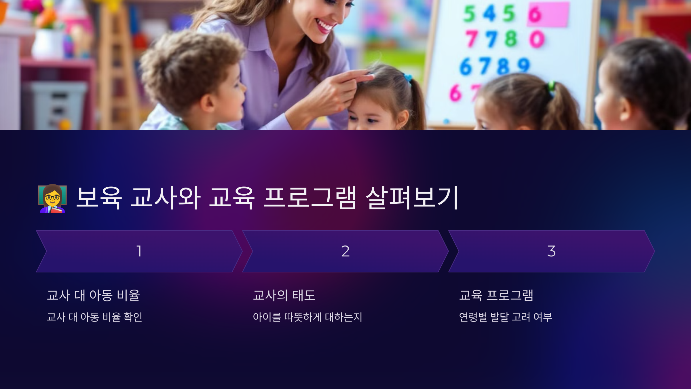 교사가 아이를 어떻게 대하는지, 교육 프로그램이 체계적인지 확인하세요.