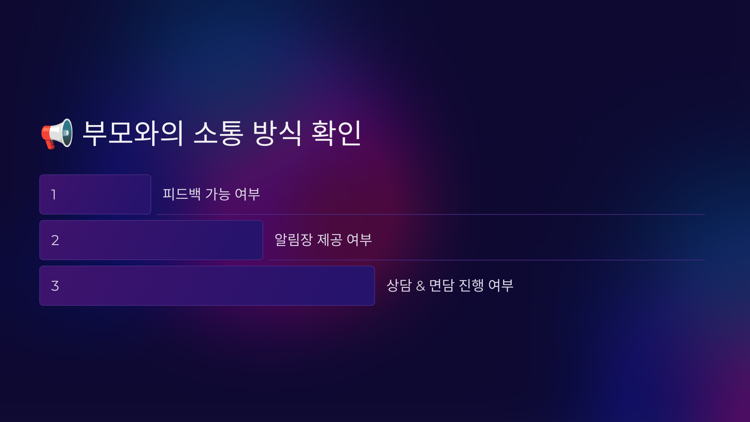 ✔ 교사와 직접 대화해 보세요! 교사의 말투와 태도에서 아이들을 대하는 방식을 알 수 있어요.