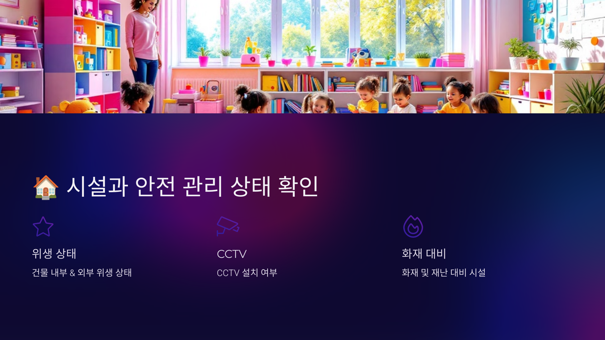 어린이집의 시설과 위생 상태는 아이의 안전과 건강에 직결돼요.