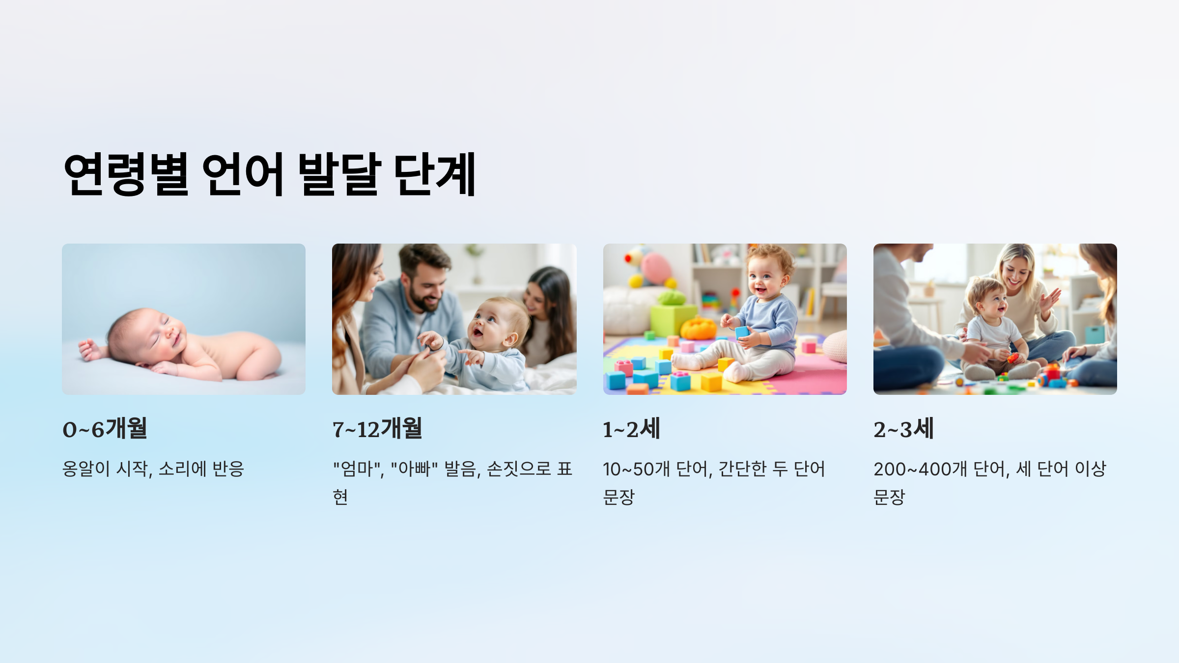 아이의 언어 발달은 단계적으로 이루어져요. 각 연령대에서 기대할 수 있는 언어 발달 특징을 정리해볼게요.