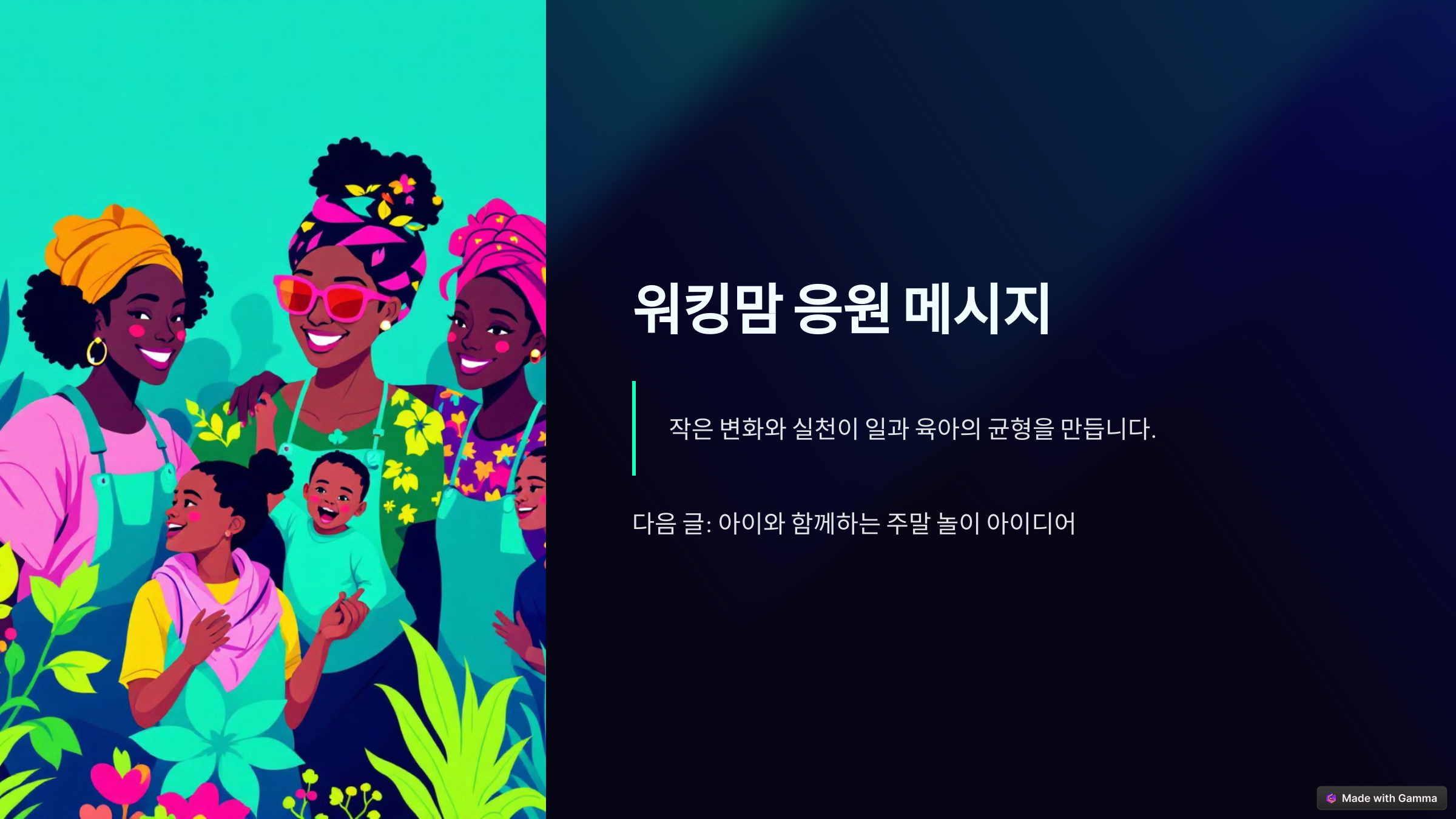 - 워킹맘 커뮤니티에서 경험을 나누고 서로 응원하는 시간을 가져보세요.