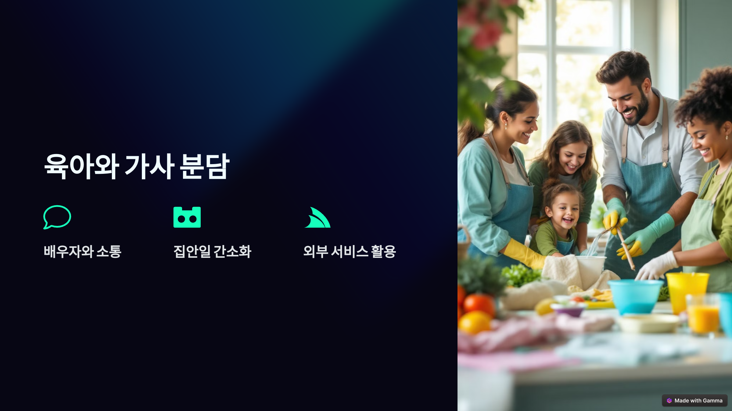 - 배우자와 소통하기: 역할을 명확히 나누고 협력하세요.