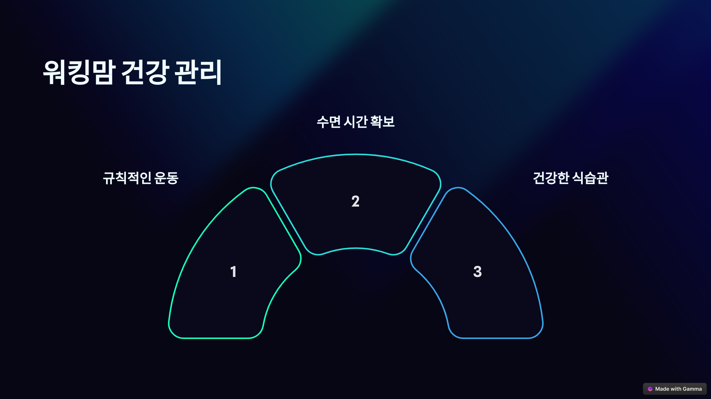 - 수면 시간 확보: 피로는 만병의 근원! 부족한 잠은 반드시 보충해 주세요.
