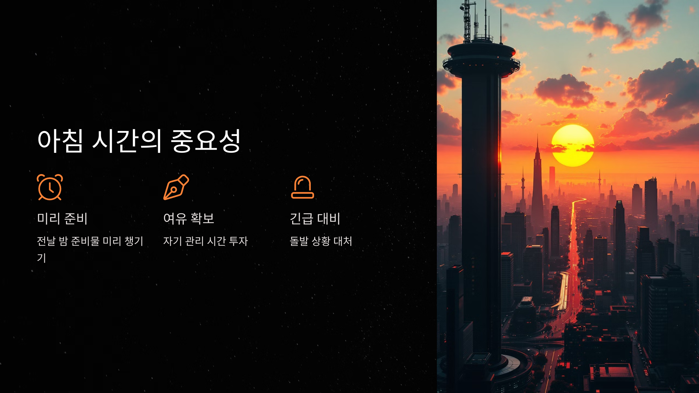 아침 시간은 골든타임이에요! 아이가 깨기 전, 혹은 출근 전 시간을 잘 활용하면 하루가 훨씬 여유로워진답니다. 🥣☀️