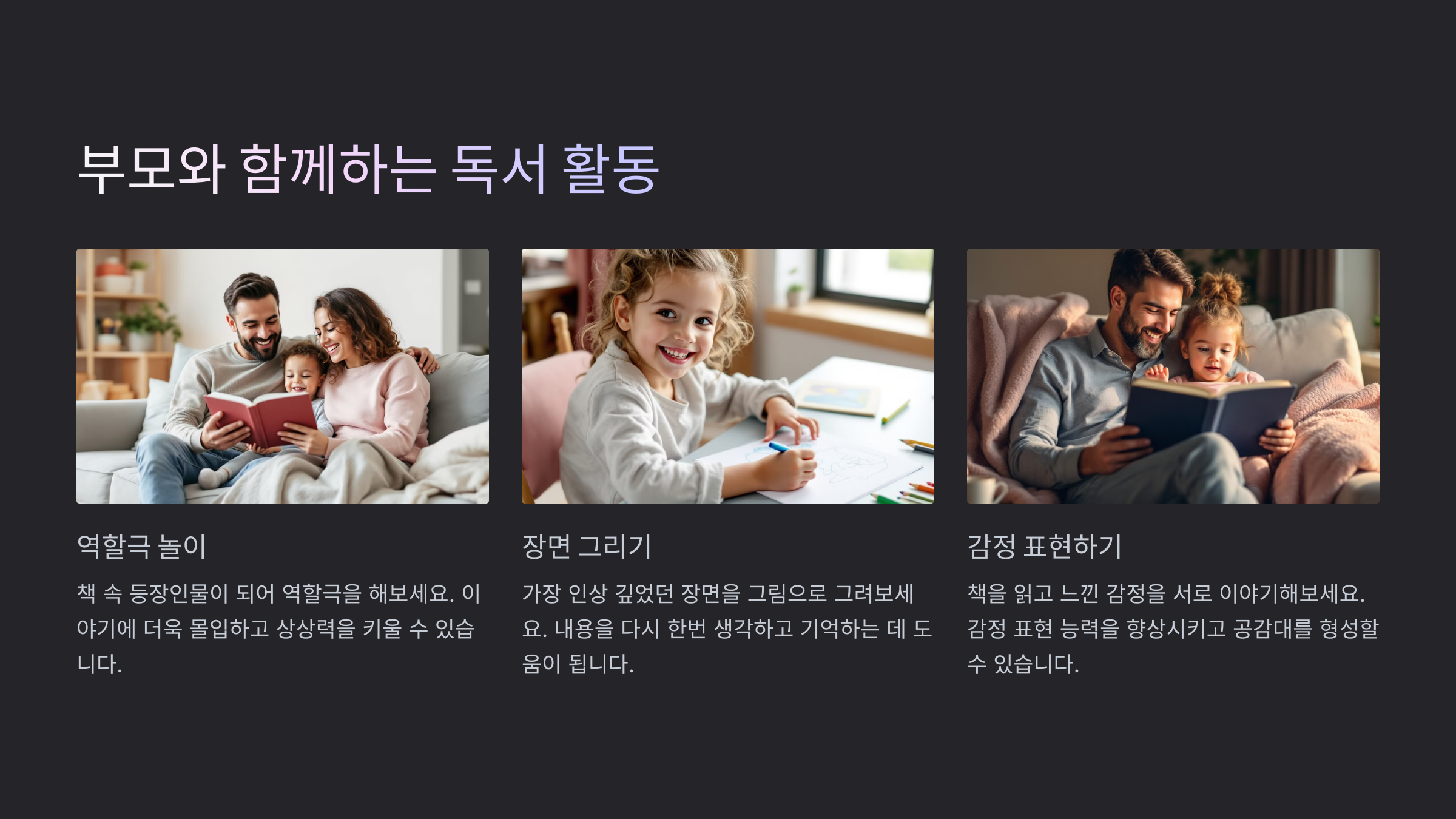 ➡️ 하지만 부모가 읽어주는 시간도 계속 유지하는 것이 좋아요.