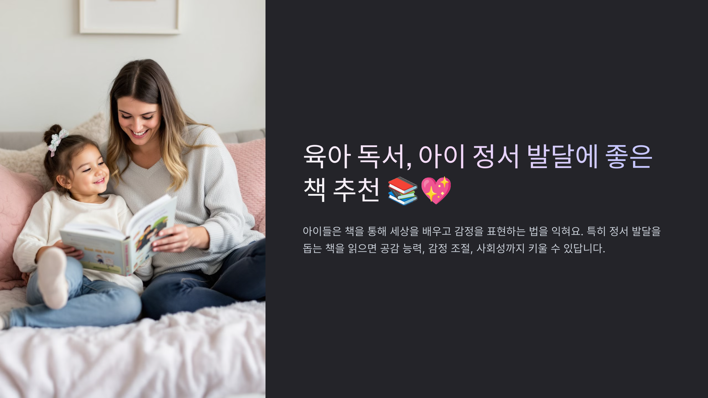 특히 정서 발달을 돕는 책을 읽으면 공감 능력, 감정 조절, 사회성까지 키울 수 있답니다.