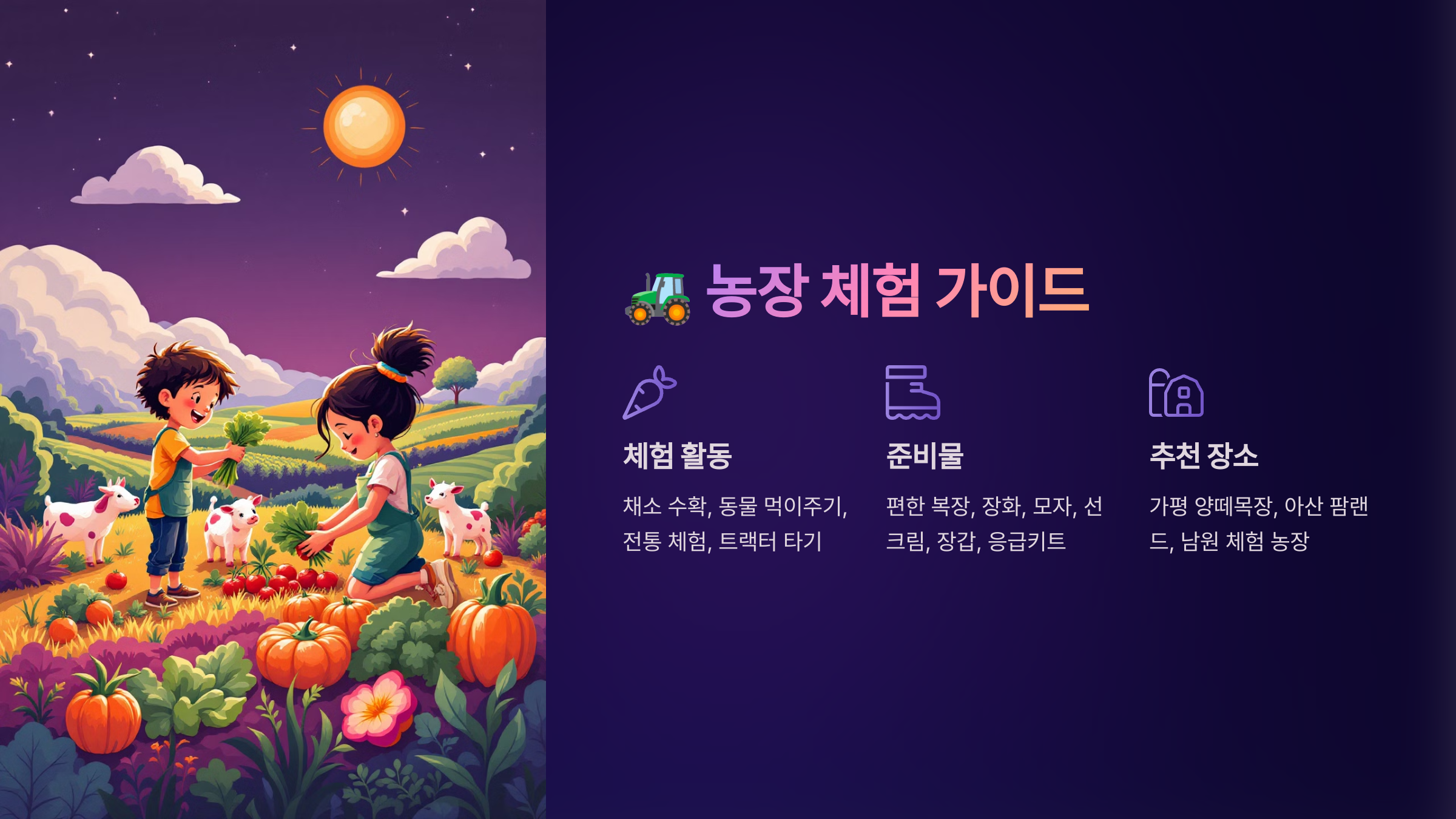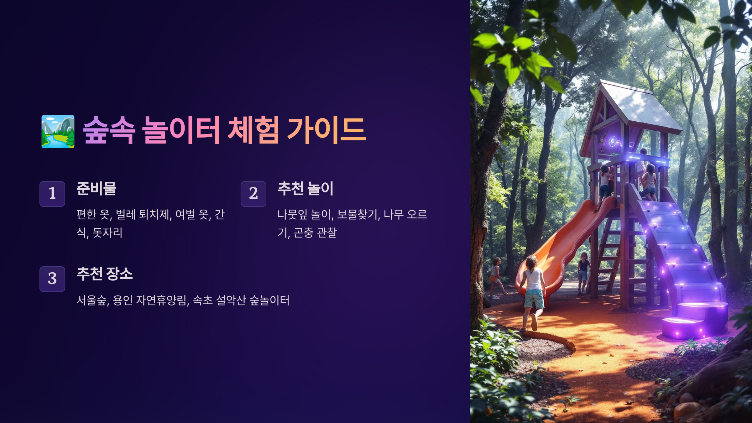 이제 숲속 놀이터와 농장 체험을 제대로 즐길 수 있는 방법을 알아볼까요? 😊