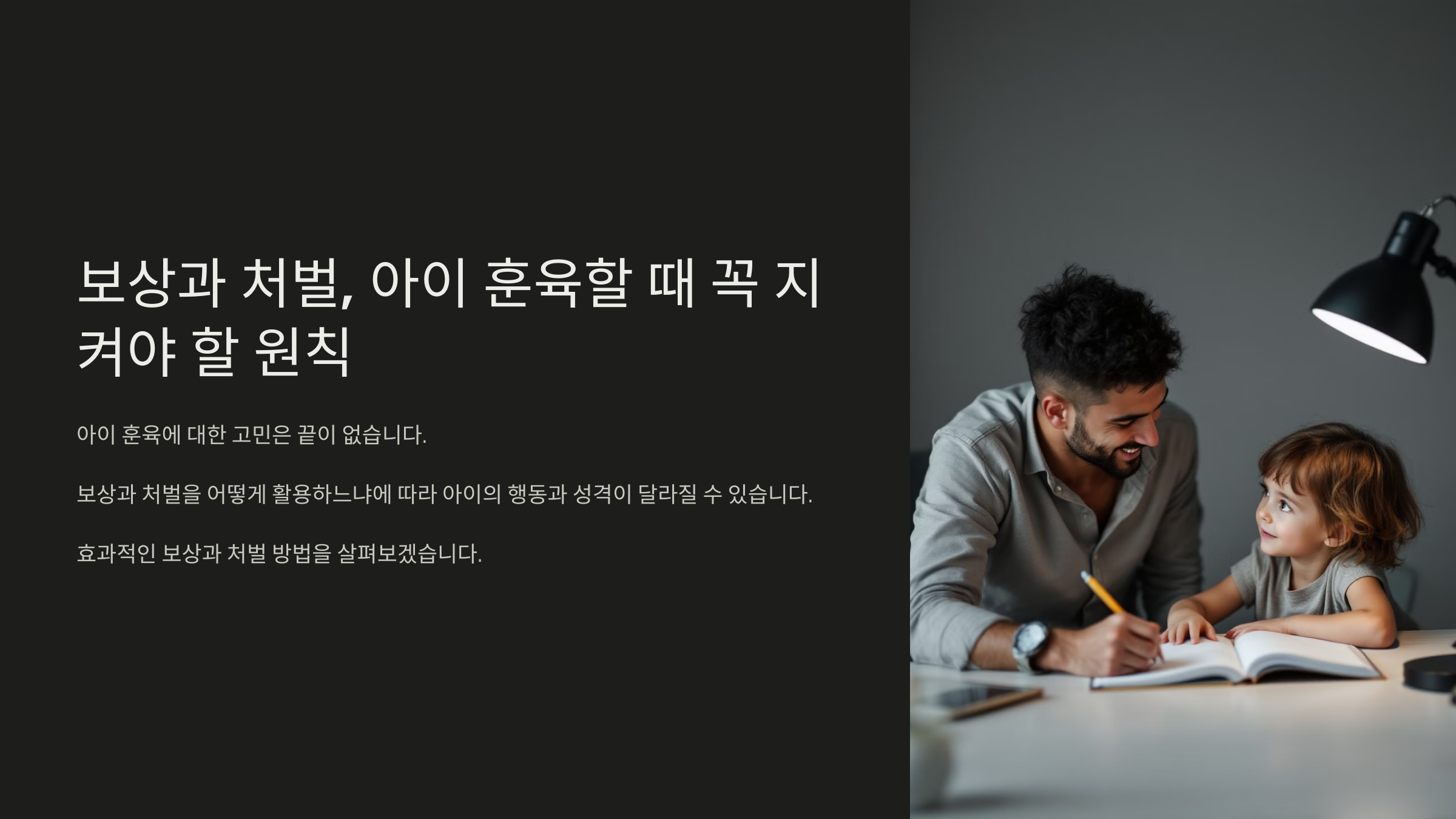 훈육의 핵심은 아이의 행동을 변화시키는 것이지, 무조건 상을 주거나 벌을 주는 것이 아닙니다.